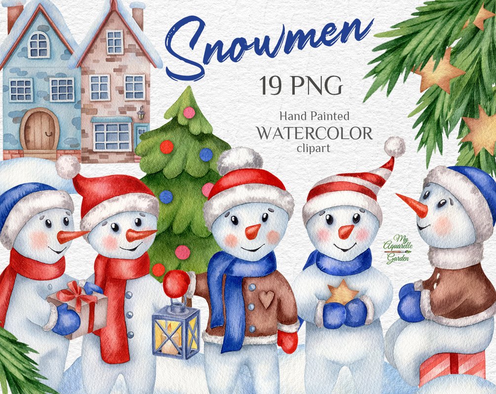 Snowmen. Winter, Christmas, New Year theme.